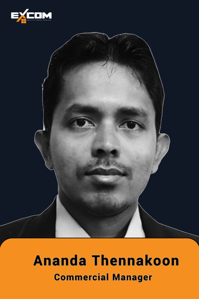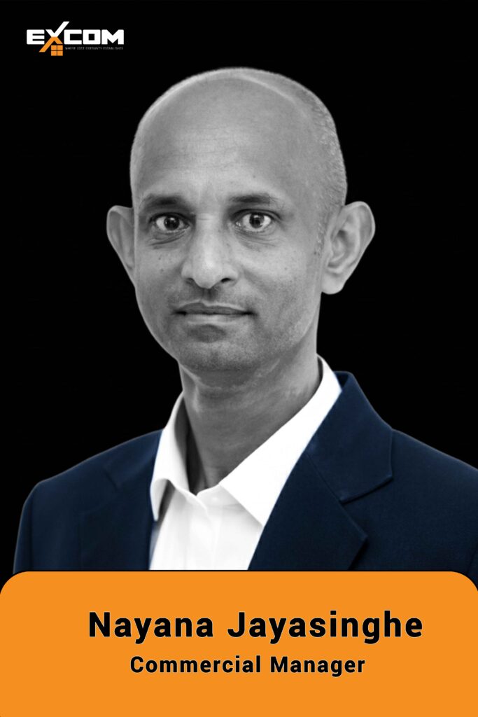 Thushara is an enthusiastic, self motivated and a hardworking Commercial Manager with over 9 years’ industry experience in pre-contract and post-contract cost management aspects specializing in the residential, commercial, hospitality, mixed-use developments, projects in Asian, KSA and the UAE. Thushara is an energetic team member who takes every challenge with a positive mindset while delivering services to serve EXCOM clients entrusting Client satisfaction. Thushara has a robust quantity surveying background holding a BSc (Hons) degree in quantity surveying.